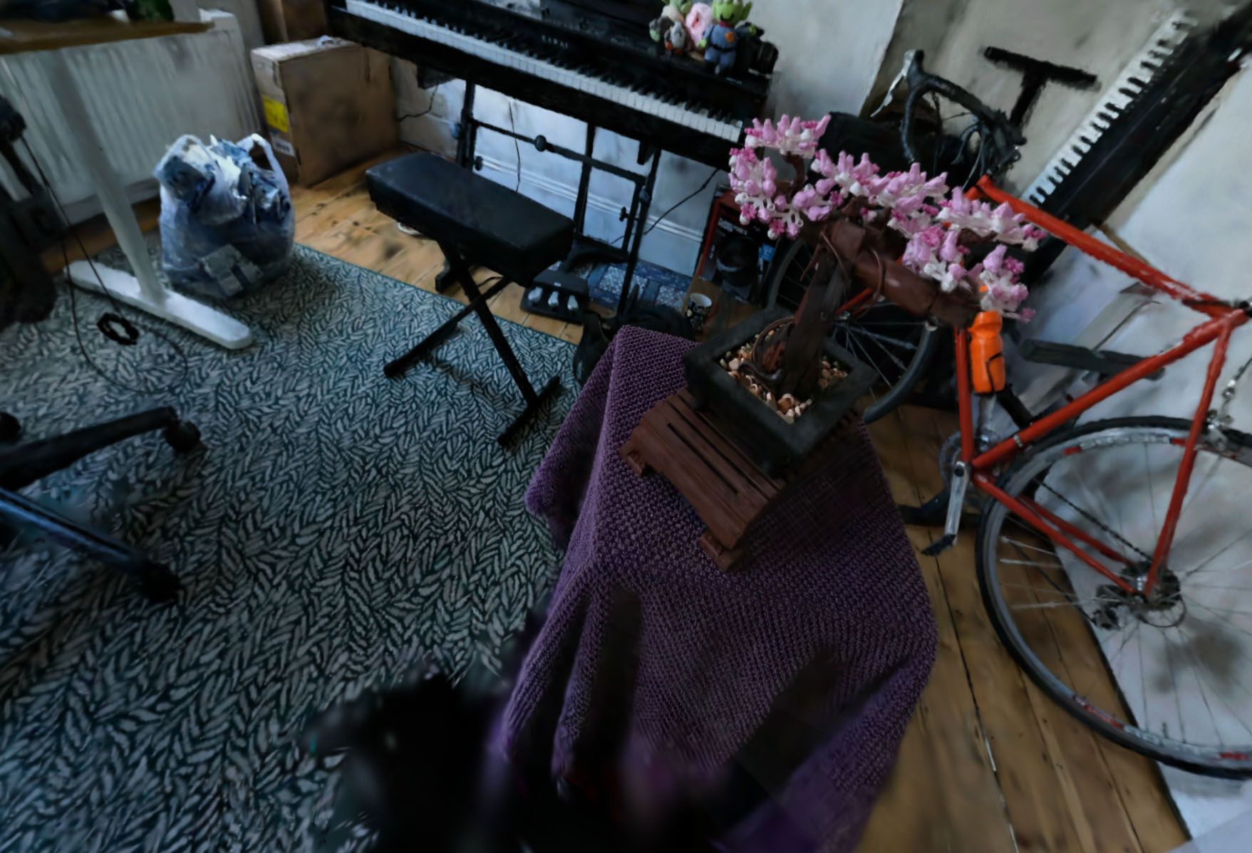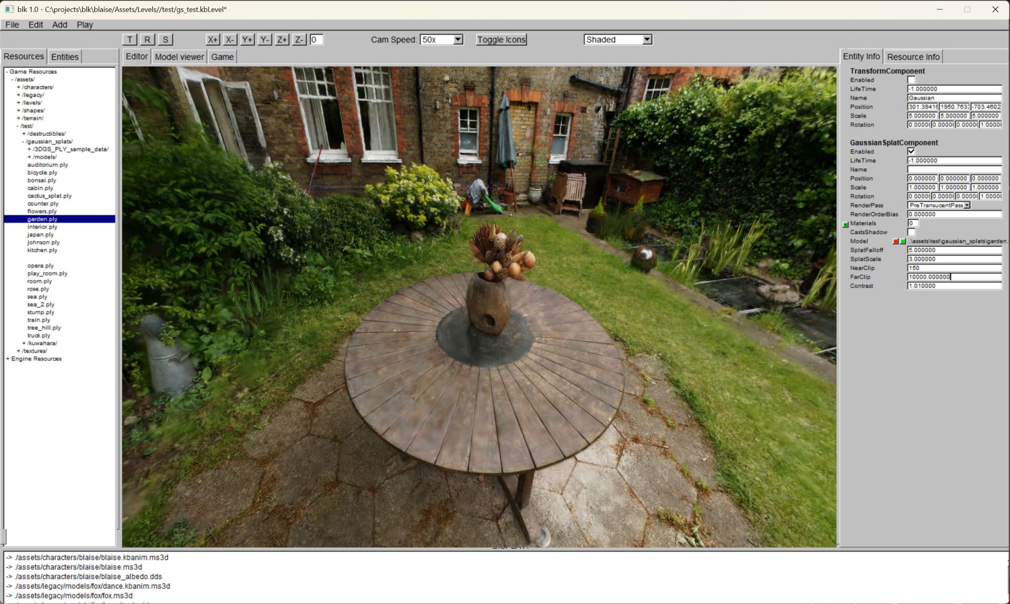 Each splat is a semi-transparent gaussian ellipsoid, depth-sorted, and blended to reconstruct the scene. For now, I’m rendering them as axially aligned billboards, oriented along the dominant axis of rotation.